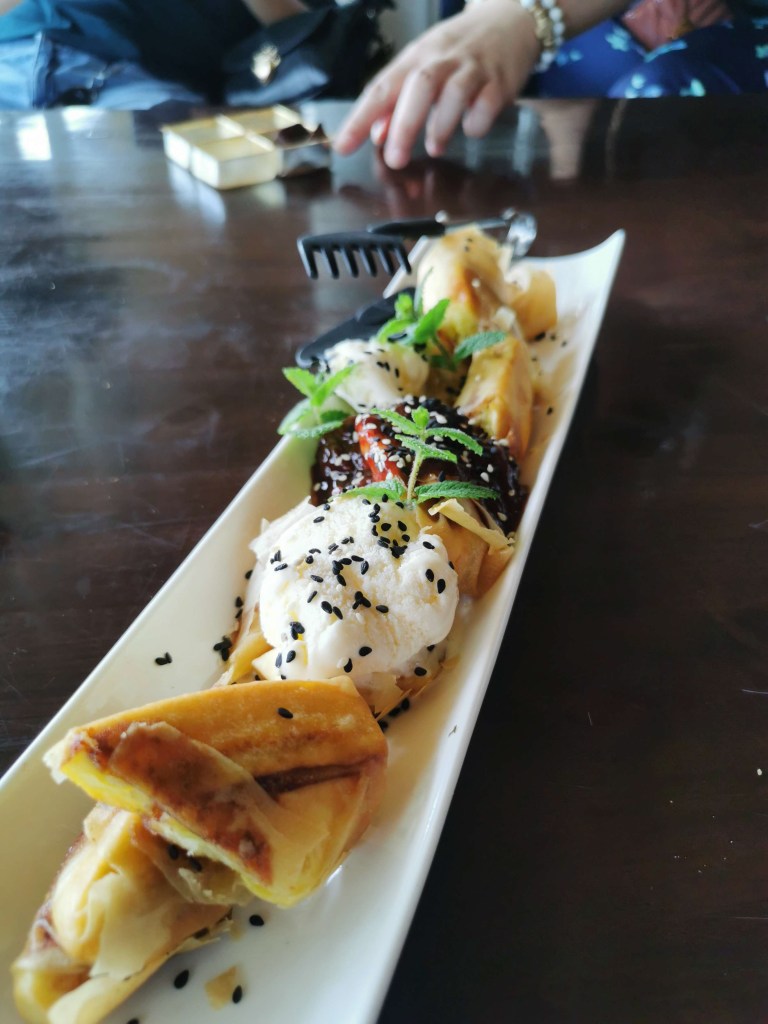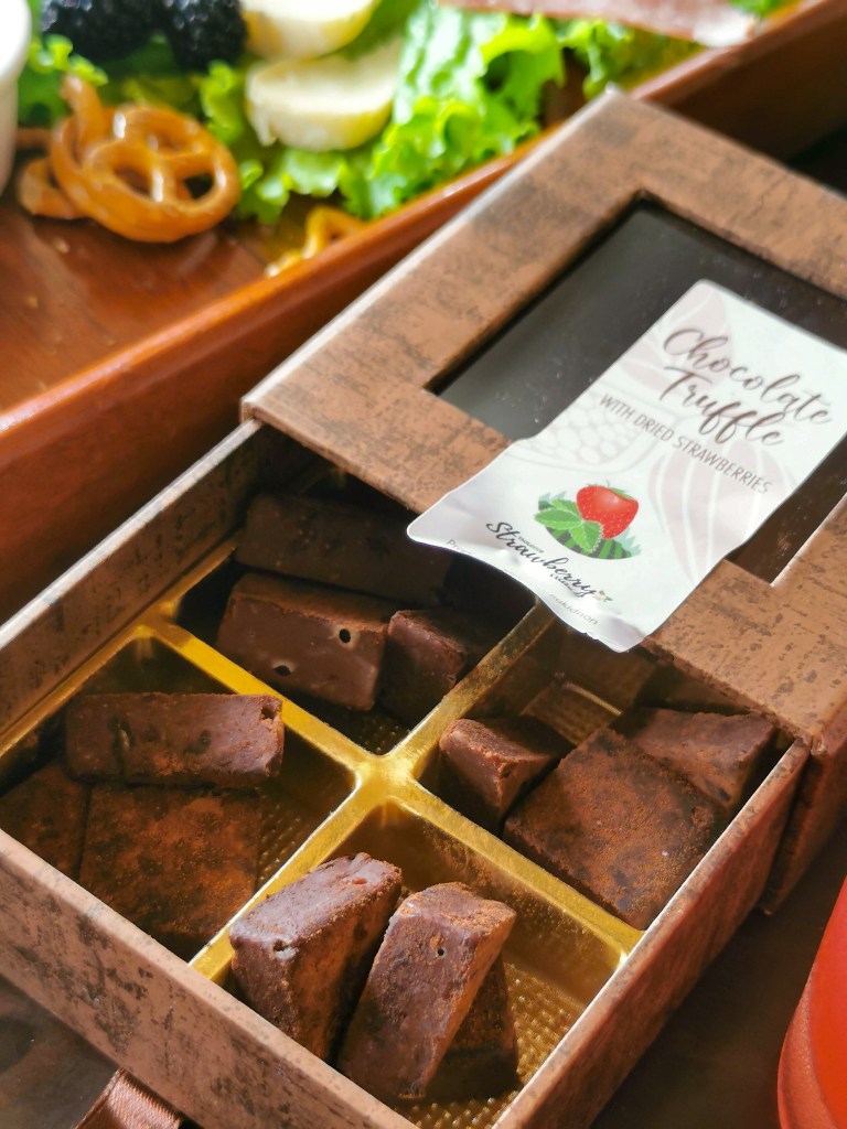 We’ve had the opportunity to try their chocolate-strawberry truffles and it is bitter and sweet at the same time. Great mix of flavors as I enjoy dark chocolates and fruits eaten together. We also tried their turon with strawberry and it is delectable and enough for four people as a sampler but not a full meal.