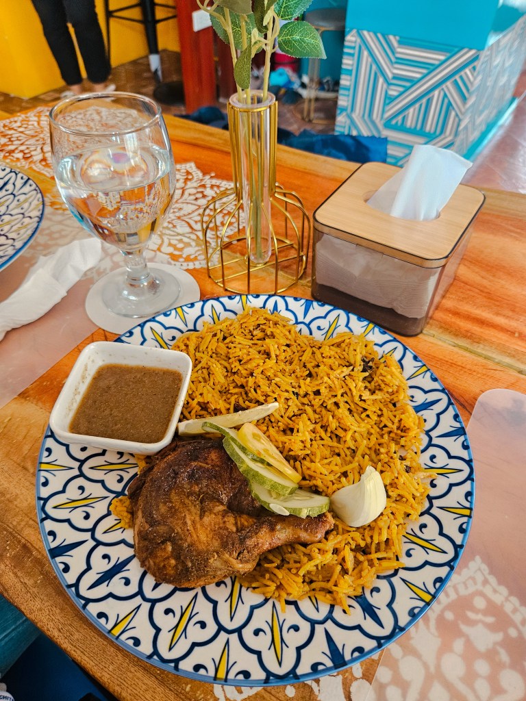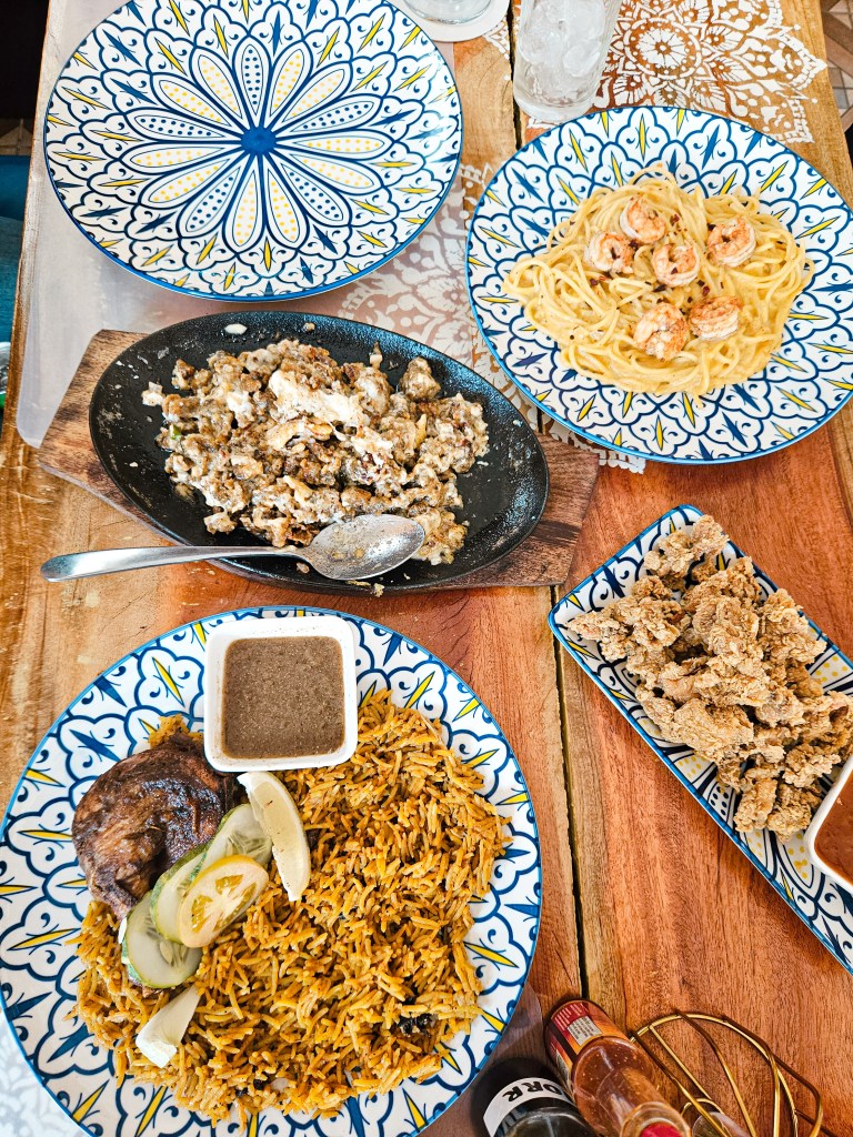They offer a variety of food but mainly with Mediterranean and Asian influences such as their biryani that comes in different meat selection. They offer chicken, prawn, salmon, and beef biryani. They also serve Singaporean laksa and salted egg shrimp which is also very popular in Singapore.