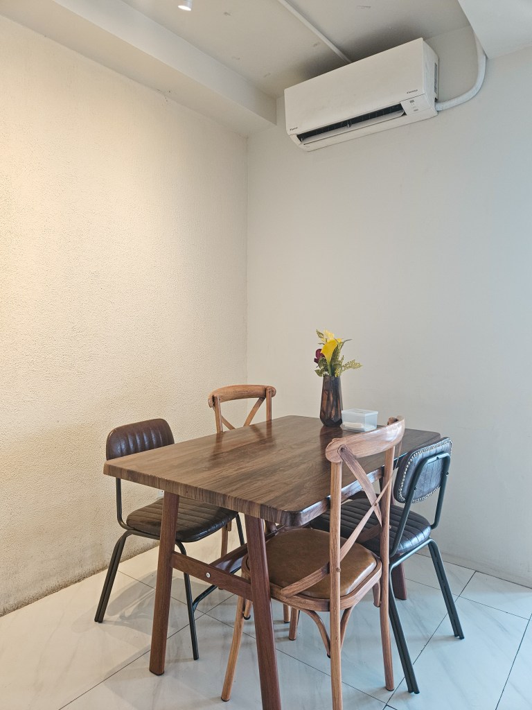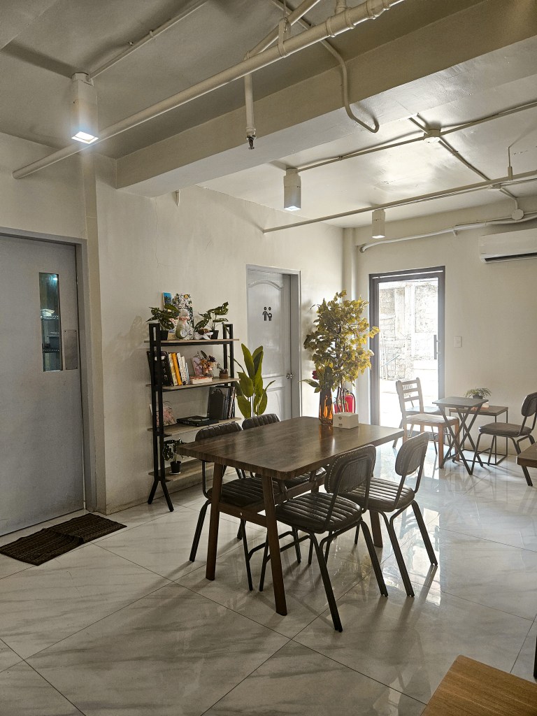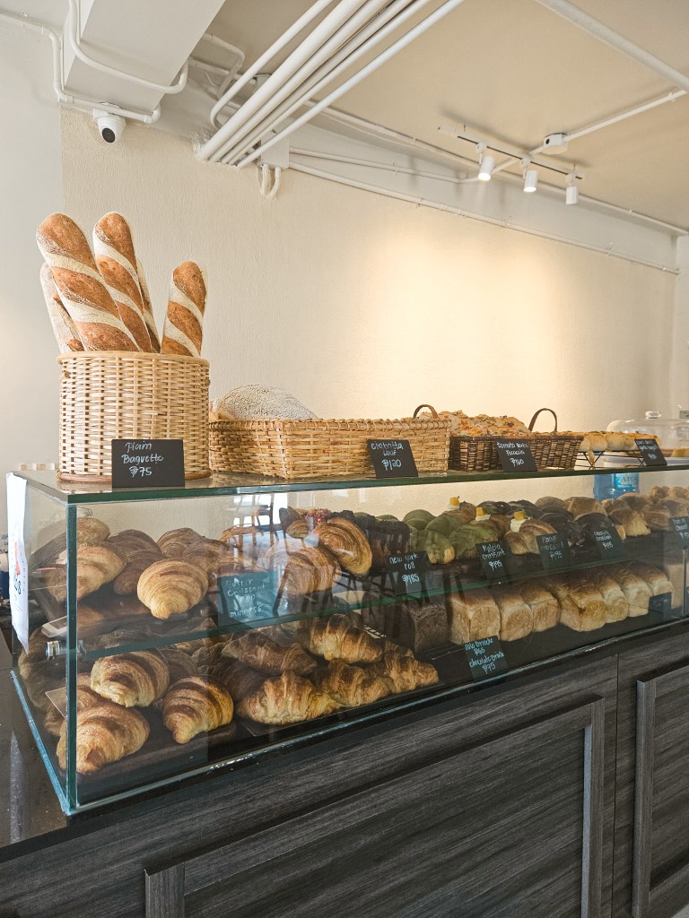 The place is painted in clean white with a long display of fresh breads covered in glass. The place made use of the natural lighting and has a minimalistic design. They have potted plants and use wood as a natural aesthetic.