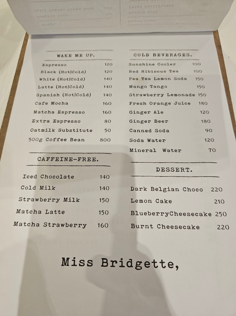 Miss Bridgette was an unexpected date night trip. Personally, I did enjoy the ambiance and it’s aesthetics but not quite with the food. Their cafe is really clean and pleasing to the eyes. Very calming and conducive for discussions. I also appreciated that they have this cute cue cards where you and your date can talk about things and get together more. The staff are generally nice and offered to let us borrow a charger to charge our phones.