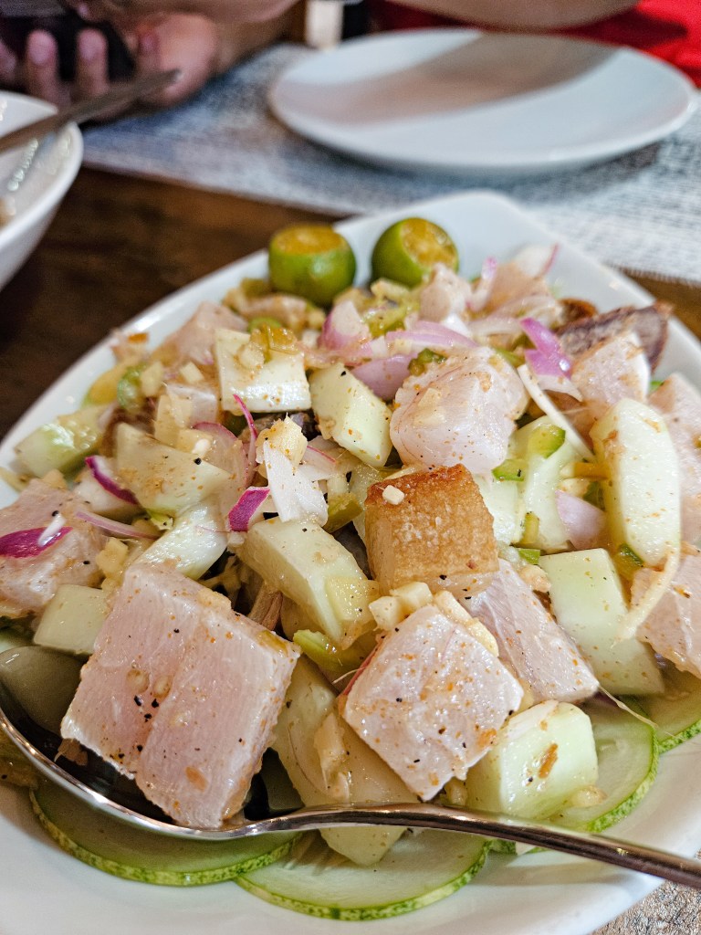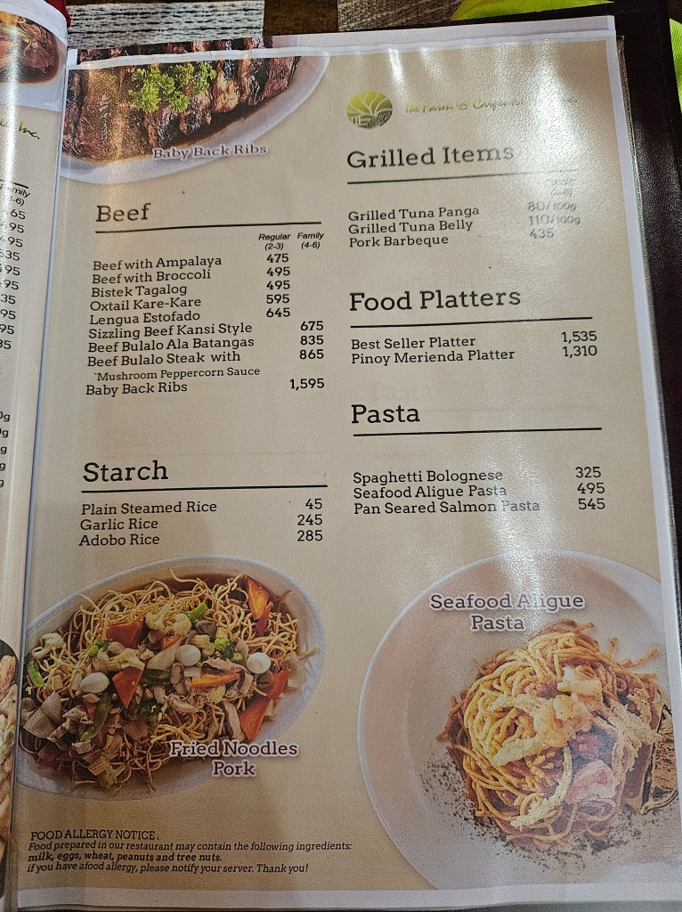 Another appetizer we didn’t want to miss out on is their special Sinuglawang the Farm for P535. The serving size can be shared between two or three people as a proper meal but is enough for us. It is one of the best dishes on our order. The vegetables were fresh, with a nice balance of spices, a tasty vinegar mix, and a great amount of fish and pork. If only the sinugba was a little charred and had some crispiness in it. An 8.8.