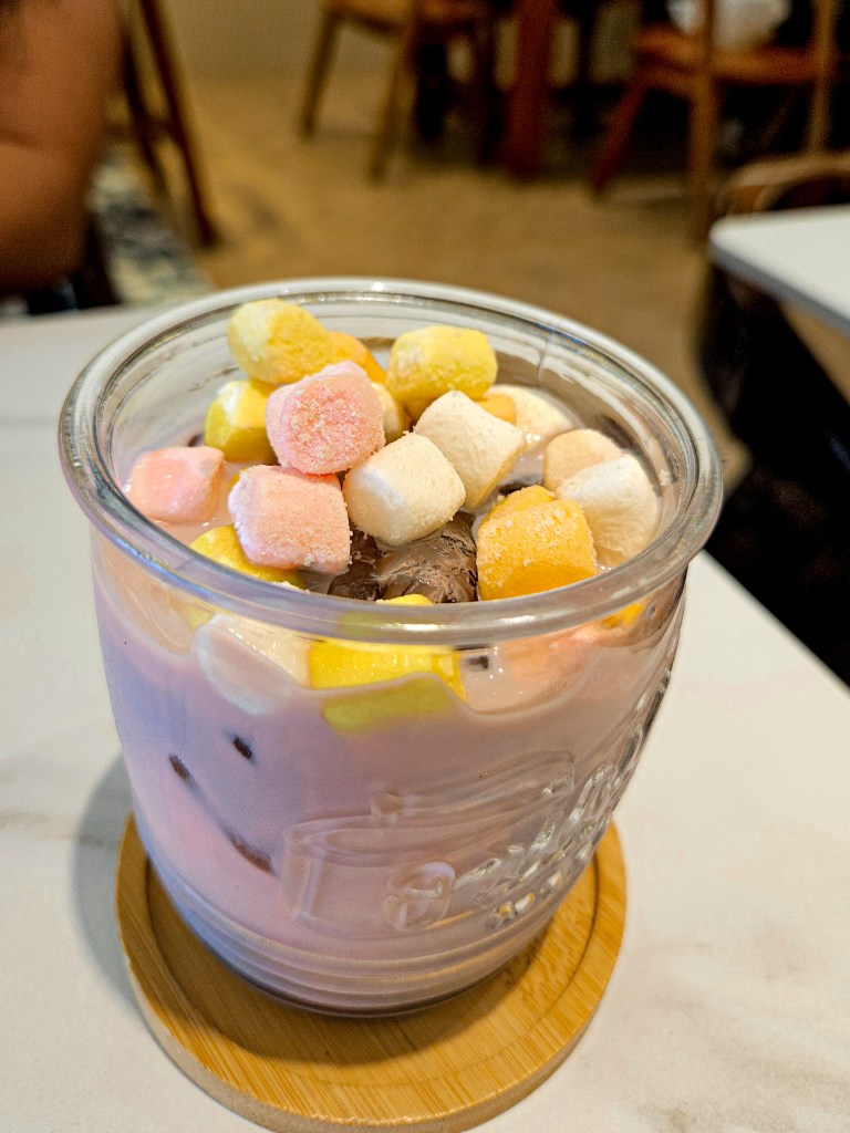 One of the most aesthetically pleasing drinks on their menu. Their Unicorn Milk is a child’s dream drink. It’s a light purple and bluish milk topped with marshmallows. Apart from its beautiful and aesthetic presentation, that’s just it, a jazzified plain milk. Flavor-wise nothing really is different. P180
