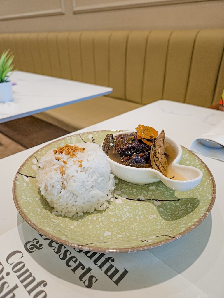 Bangus is one of the least preferred fish that I eat but their Spanish Bangus completely changed my mind. The fish is drenched with a thick olive oil blend, releasing an aromatic and enticing smell. The rich smell of bay leaf, garlic, and chilies is wafting through the air. It looks unappetizing which makes you misjudge the dish but the taste is surprisingly good. It’s the kind of underrated dish that often gets overlooked, yet delivers a hidden delight that’s well worth trying. The fish is crispy fried with a little charring, giving a satisfying crunchy mouthfeel but surprisingly tender on the inside. There is a slight dryness to the fish but the olive oil bathing the fish provides a good balance to the moisture. I do feel that this dish is not for everyone but if you feel a little bold and would like to choose something away from your comfort zone, this will surely surprise you. At least that’s how this dish did it for me. Priced at P190 for a solo dish with rice.