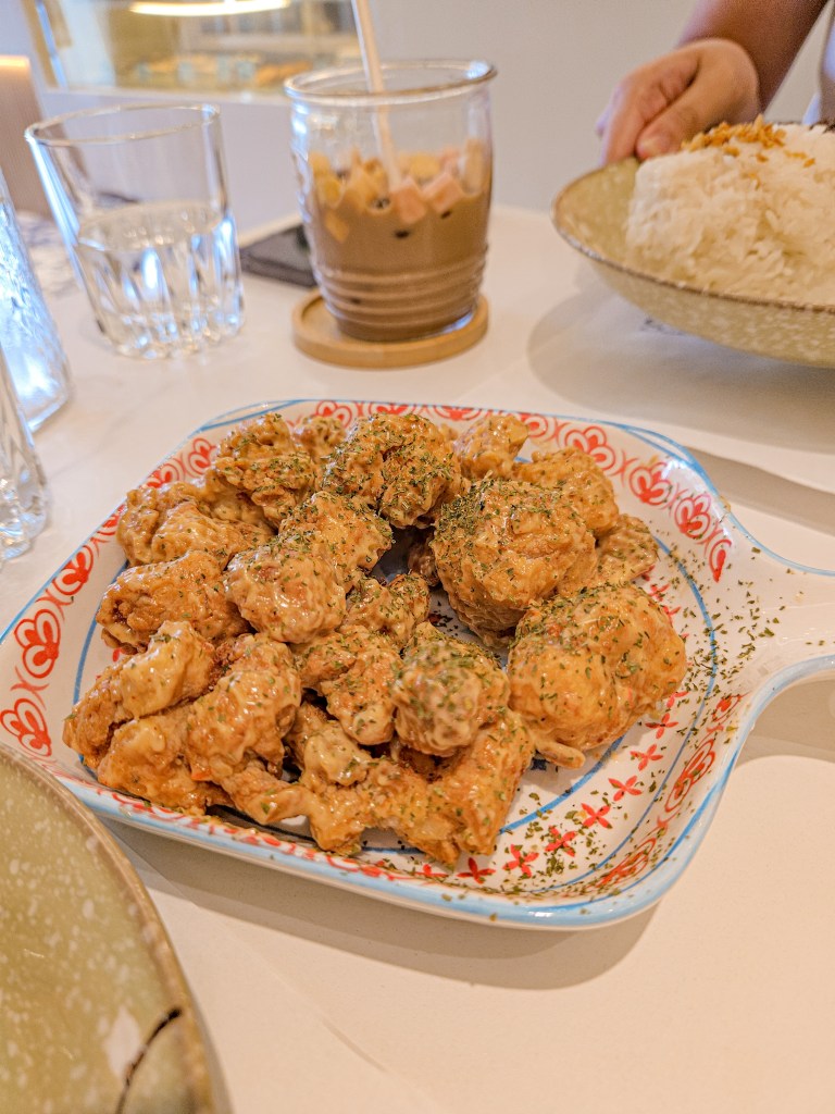 Their Chicken Bangbang is one of the dishes I have been looking forward to but unfortunately, it didn’t quite live up to the expectations. The dish was generously portioned, with bite-sized chicken pops that had a fantastic crispy texture, perfectly coated in a flavorful sauce that managed to keep the crunch intact. While it was well-seasoned, the flavor felt flat due to a noticeable lack of salt. With a little more salt, this could have been an absolute standout dish. The sauce had an unusual zing to it which may be due to the cayenne and paprika. I would have put it on a good 8 or even to a 9 if it was not so bland. The sauce was good, but it was dragged down by how underwhelming the batter and the chicken was. A good plate that can be shared by 2-3 people is priced at P380.