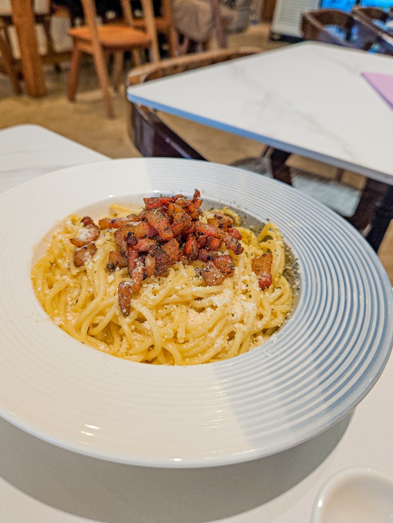 Although they’re not an Italian restaurant, this spot is one of the few in Davao that offers carbonara prepared in the classic Italian style—without cream, milk, or butter, but with eggs and cheese! Despite being a Filipino-centric comfort food cafe, I was pleasantly surprised by how delicious their carbonara was. It’s one of the best I’ve had. It had a generous amount of guanciale, the perfect meat for the dish. However, while the guanciale itself was flavorful, the cuts were a bit too thick and some cuts had a big chunk of fat, giving the meat a gamey aftertaste which was overpowering the taste. Still, the overall dish was truly ravishing, and it’s a standout for anyone craving an authentic carbonara experience. It was truly an experience because the pasta was cooked just right, it was saucy from the egg and cheese combination yet it was not too salty giving a way for the guanciale to shine. If it wasn’t for the inconsistency of the guanciale meat cuts, this would have been a 10/10! Definitely is a favorite dish that I order. At P300.